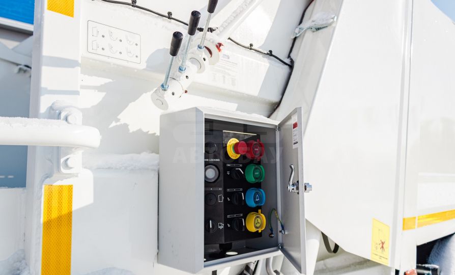 Основной бункер разгружается выталкивающей плитой после поднятия заднего борта. Операция осуществляется при помощи рычагов расположенных за кабиной. В процессе разгрузки применяются кнопка «подгазовки» и кнопка «одиночного цикла», необходимая для разгрузки мусора из загрузочного бункера при поднятом загрузочном бункере.